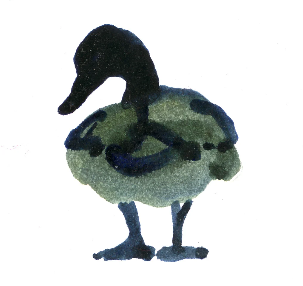 Artist Claire Eder makes lots of things including amazing water color animals. She let me use one of her ducks as my logo. Here's the original duck!